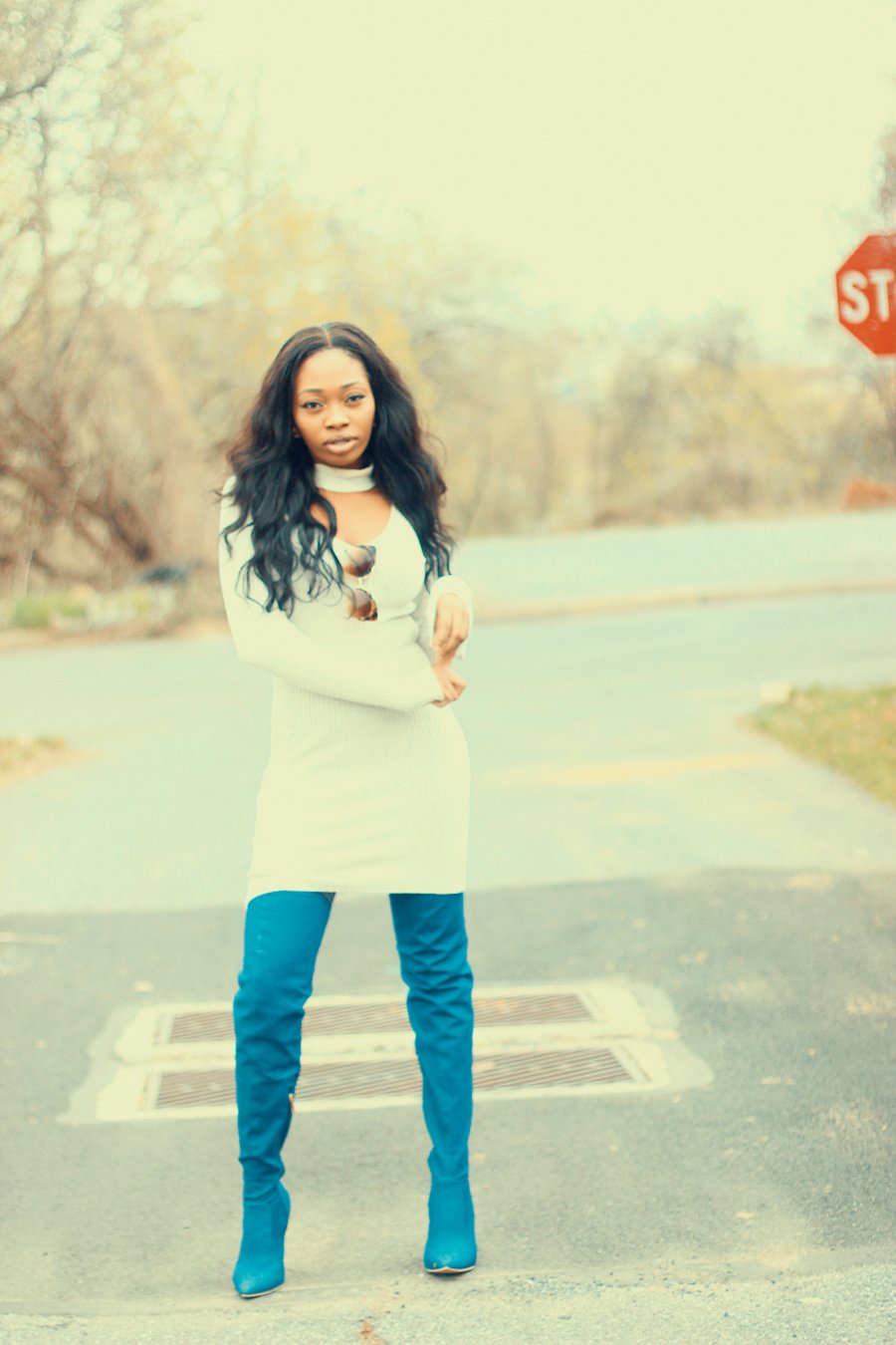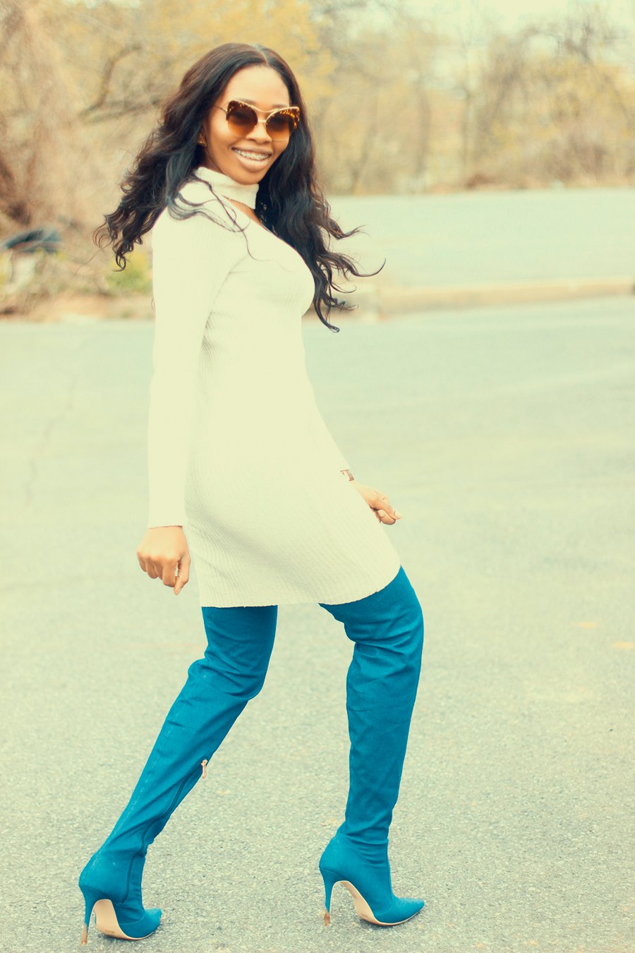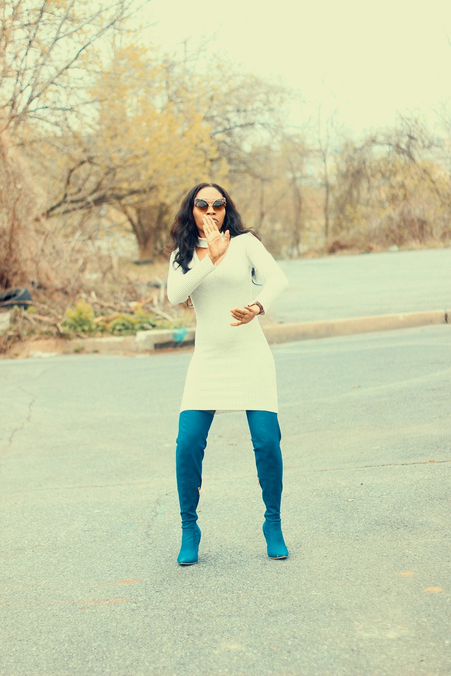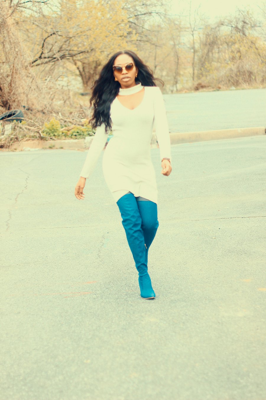 So about the outfit, I got these denim boots courtesy of AmiClubwear. This is the second time I’m working with them,I love that they have trendy pieces at affordable prices. My legs were too slim for these boots, had to use my spanks to hold it in place- haha! – Thank God its really long.